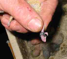Si vous voulez baguer vos jeunes, il faut le faire vers 8 à 10 jours, diamètre 4,5. Les jeunes sortent du nid vers six semaines les parents continuent à les nourrir une quinzaine de jours.